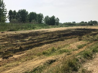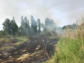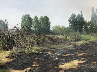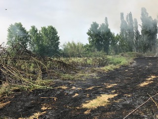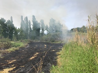 Η πυρκαγιά έκαψε μέρος αγροτολειβαδικής έκτασης καθώς και τμήμα με καλάμια στην παρόχθια ζώνη της Τριχωνίδας.