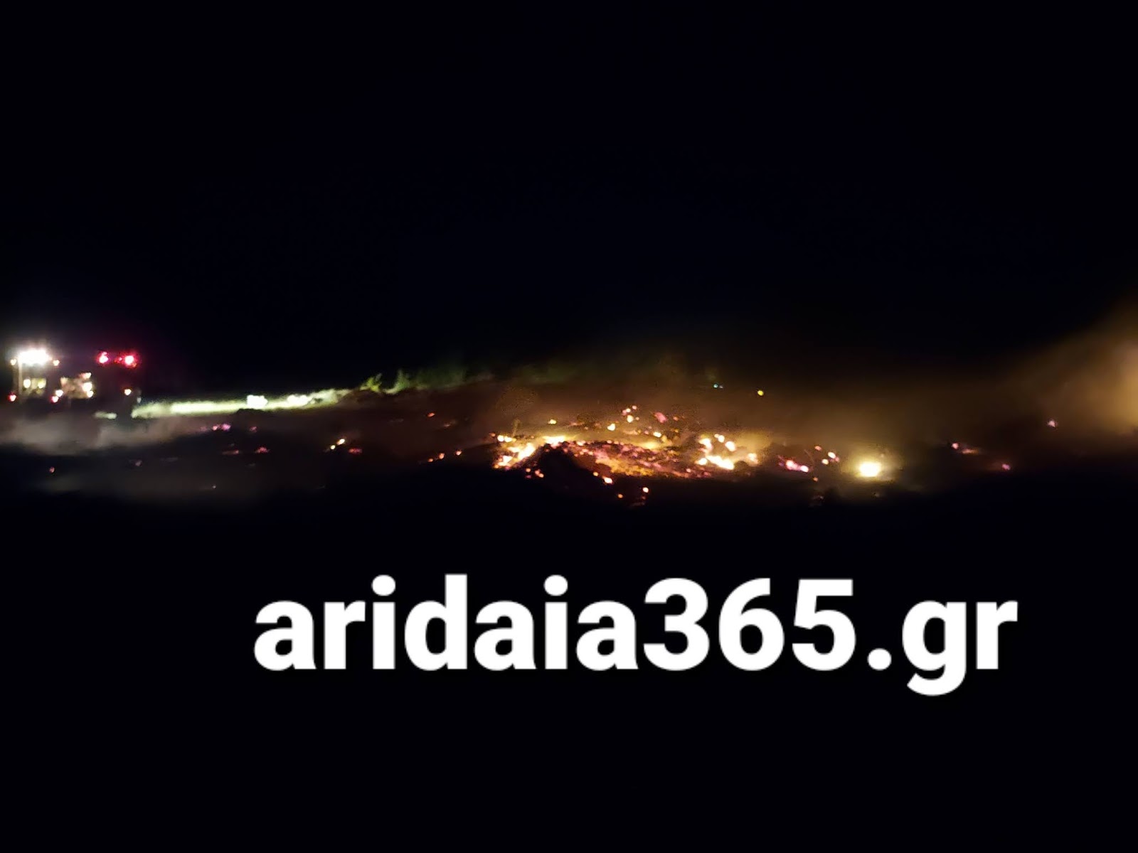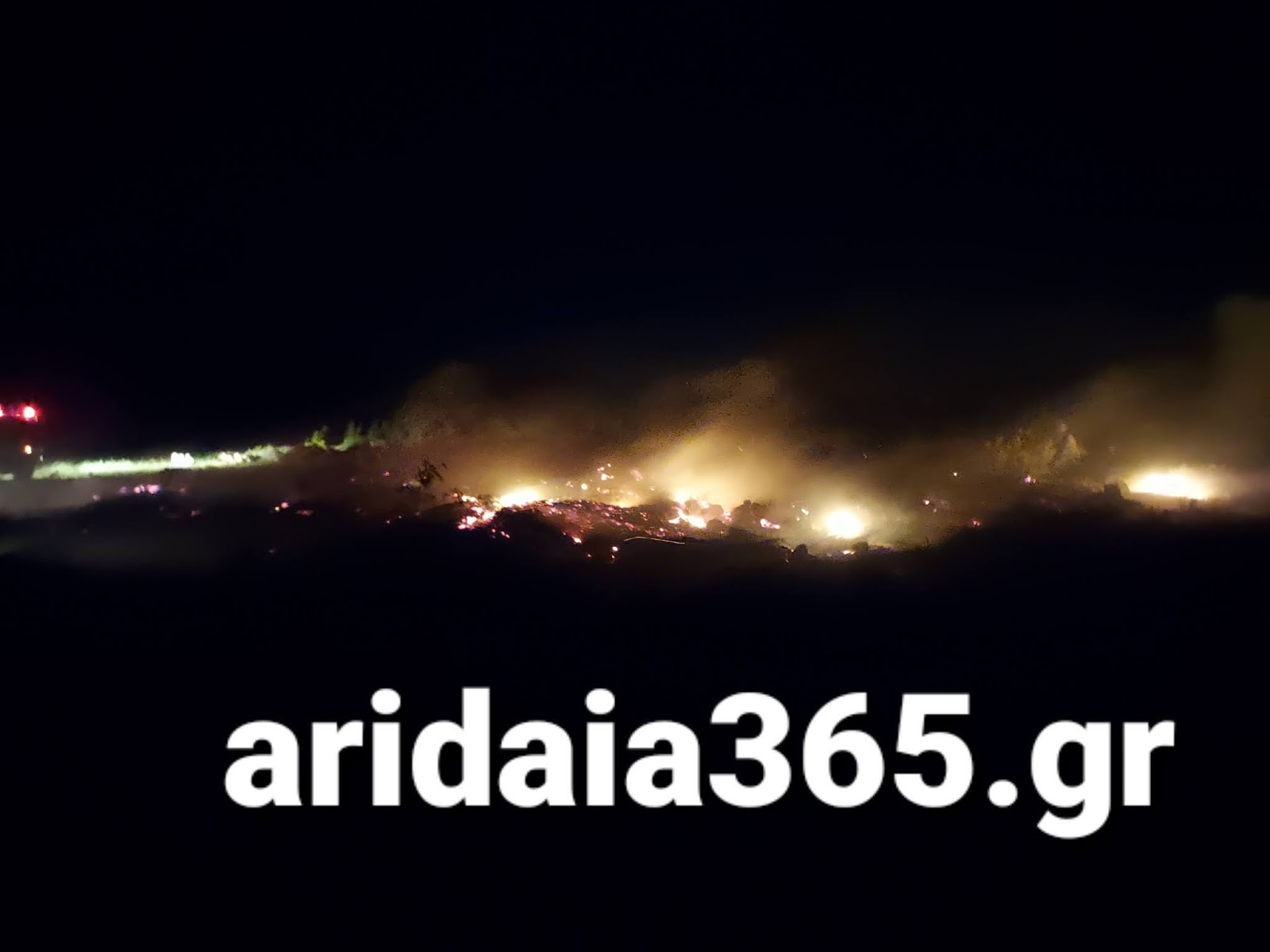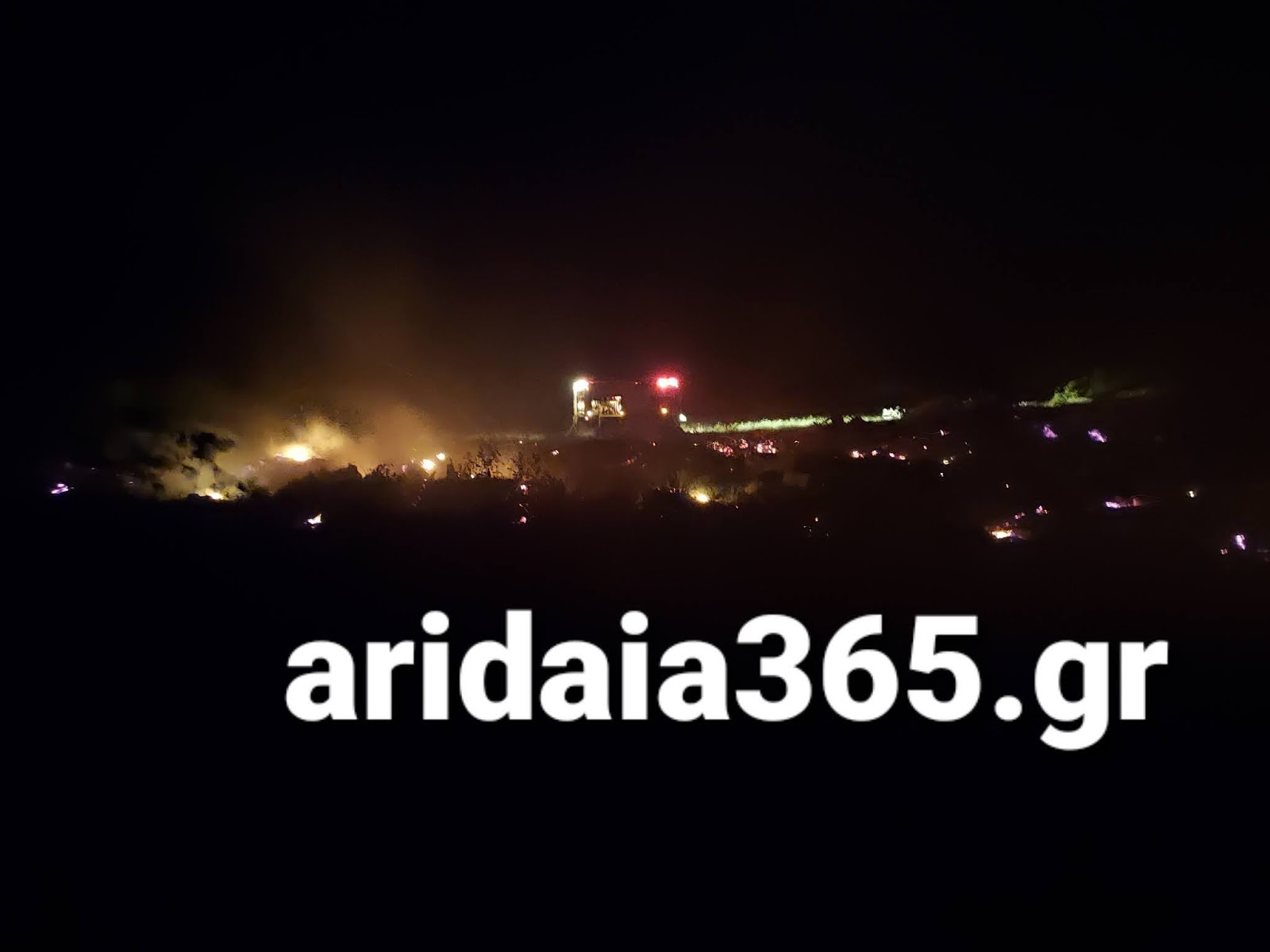 Επί τόπου βρίσκονται 3 πυροσβεστικά οχήματα και άντρες της Π.Υ. Αριδαίας και προσπαθούν να σβήσουν τις εστίες φωτιας που υπάρχουν.