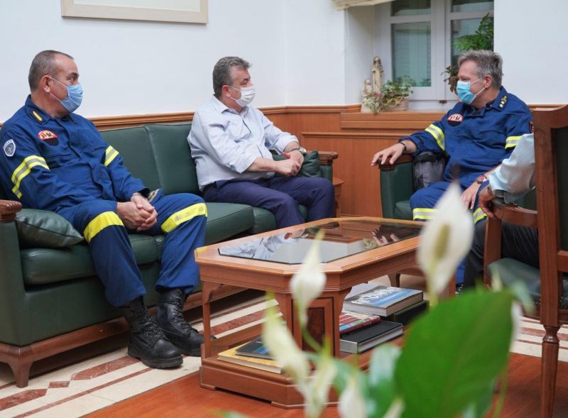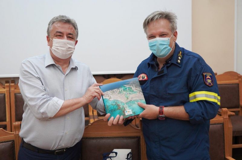 Ο Υποστράτηγος συναντήθηκε με τον Περιφερειάρχη Κρήτης στο πλαίσιο περιοδείας του στο νησί ενώ ακολούθησε σύσκεψη με όλους τους εμπλεκόμενους με την Πολιτική Προστασία. Στη διάρκεά της συζητήθηκαν επιμέρους θέματα συνεργασίας, ειδικά στον τομέα της πρόληψης και της ενημέρωσης του κοινού, καθώς και το ενδεχόμενο παράτασης της αντιπυρικής περιόδου, με τα ανάλογα περιοριστικά μέτρα, λόγω των καιρικών συνθήκων.