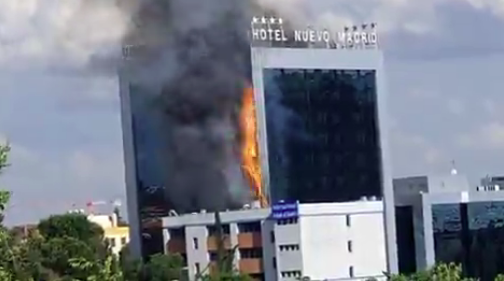 Σύμφωνα με τα ισπανικά ΜΜΕ η φωτιά έχει ξεσπάσει στους πάνω ορόφους του ξενοδοχείου, ενώ όπως αναφέρουν κομμάτια του κτιρίου που καίγονται πέφτουν στους γύρω δρόμους.