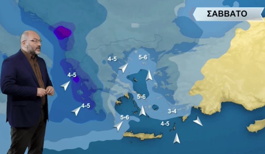 Ανεμοι: Βορειοανατολικοί 3 με 4 και στα ανατολικά και νότια 5 έως 6 μποφόρ.