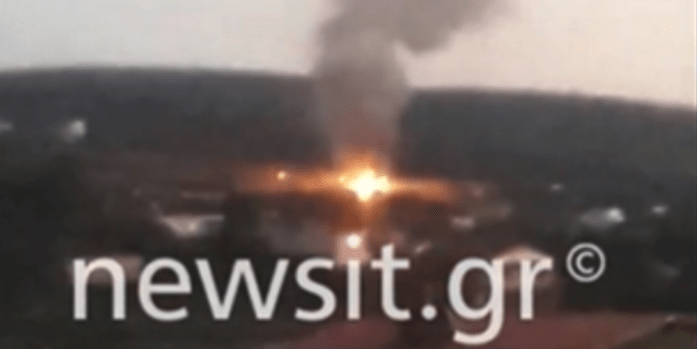 Φωτιά σε πλήρη εξέλιξή σε εγκαταλελειμμένη αποθήκη στο Κορωπί επί της οδού Λευκάδος 11