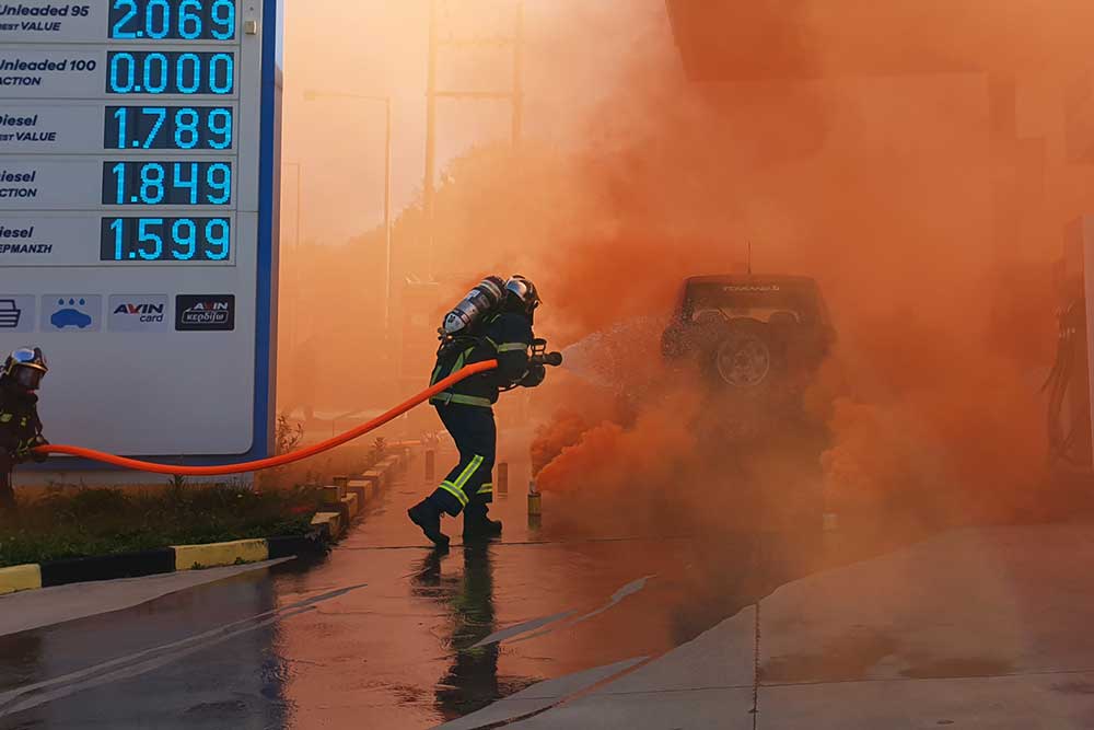 Το σενάριο της άσκησης προέβλεπε εκδήλωση πυρκαγιάς σε Ι.Χ. στο χώρο των αντλιών του πρατηρίου, κατά το ανεφοδιασμό του, ενώ υπήρχε και κίνδυνος μετάδοσης της πυρκαγιάς στις δεξαμενές καυσίμων και στο κτίριο του καταστήματος (γραφείο) του πρατηρίου.