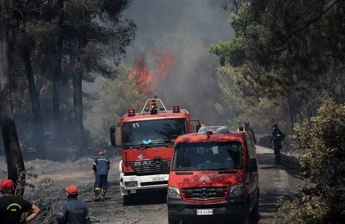 Συνδρομή από εθελοντές πυροσβέστες.