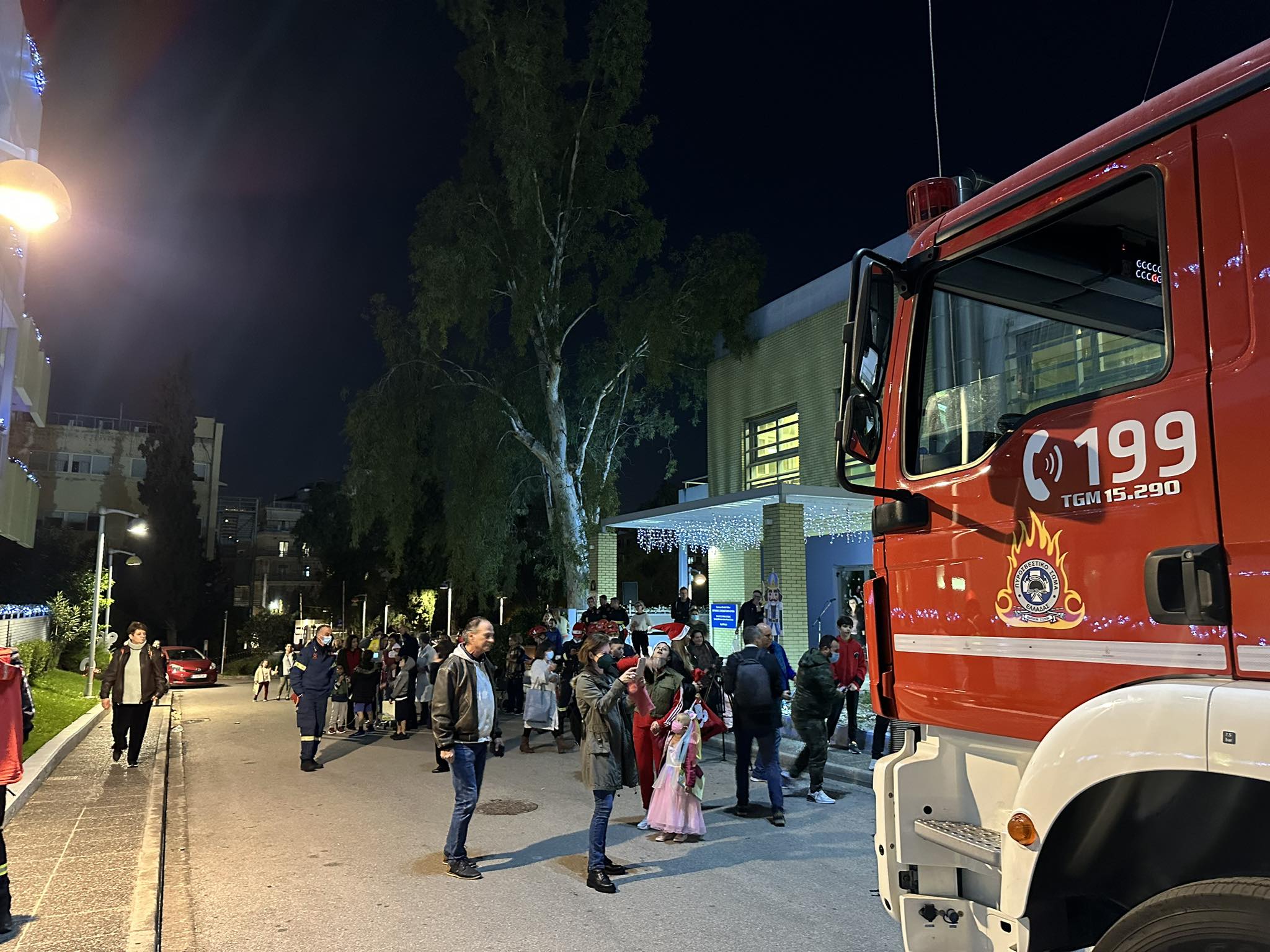 Μάλιστα από τον γερανό κατέβηκε ένας Άγιος Βασίλης, ενώ οι πυροσβέστες μοίρασαν δωράκια στα παιδιά που νοσηλεύονται.