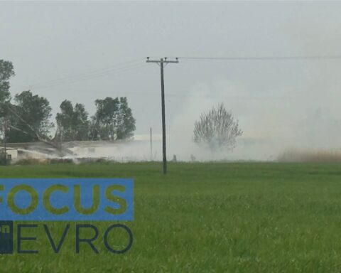 Η φωτιά καίει υλικά όπως σωλήνες άρδευσης και ελαστικά, με αποτέλεσμα να δημιουργείται έντονος καπνός στην περιοχή.
