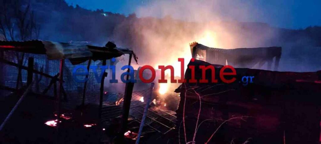 Πυρκαγιά σε μαντρί με ζώα στην περιοχή των Ροβιών στην Εύβοια